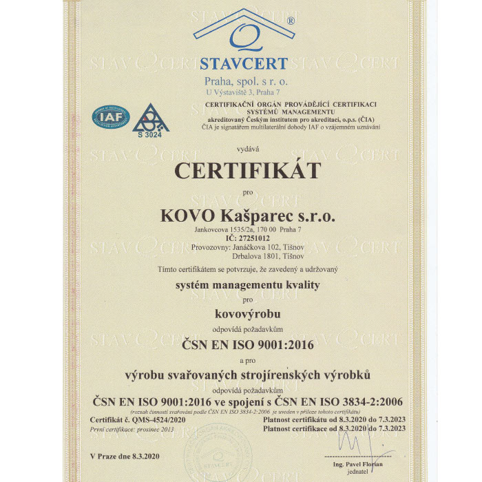 Kvalita našich výrobků je u nás garantovaná přijatými standardy i používanými technologiemi. Jsme držiteli certifikátu ISO 9001 a ISO 14001.